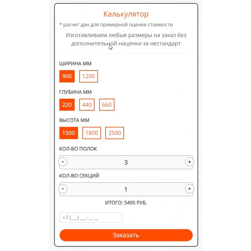 Модуль "Калькулятор стеллажей" от веб-студии Максвебсайт г. Заречный