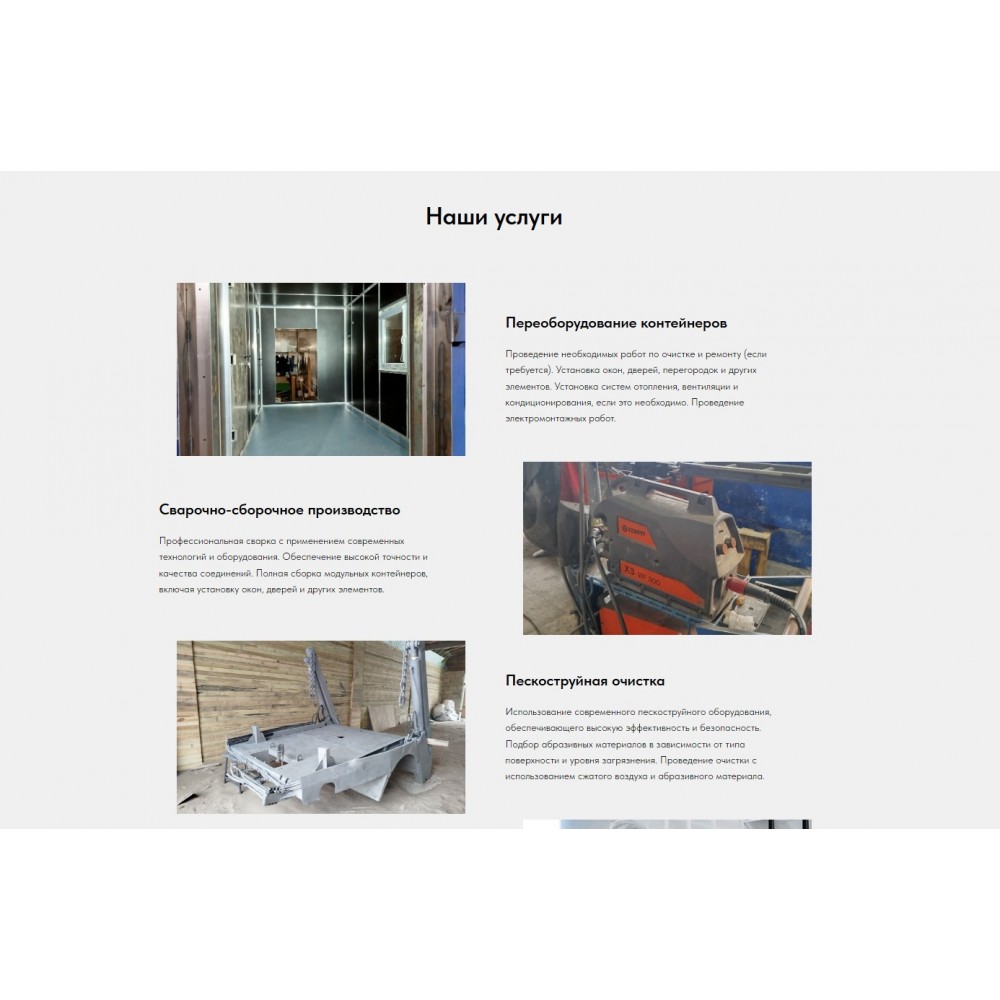Разработка современного, информативного и функционального веб-сайта для производителя морских контейнеров, расположенного в Санкт-Петербурге.