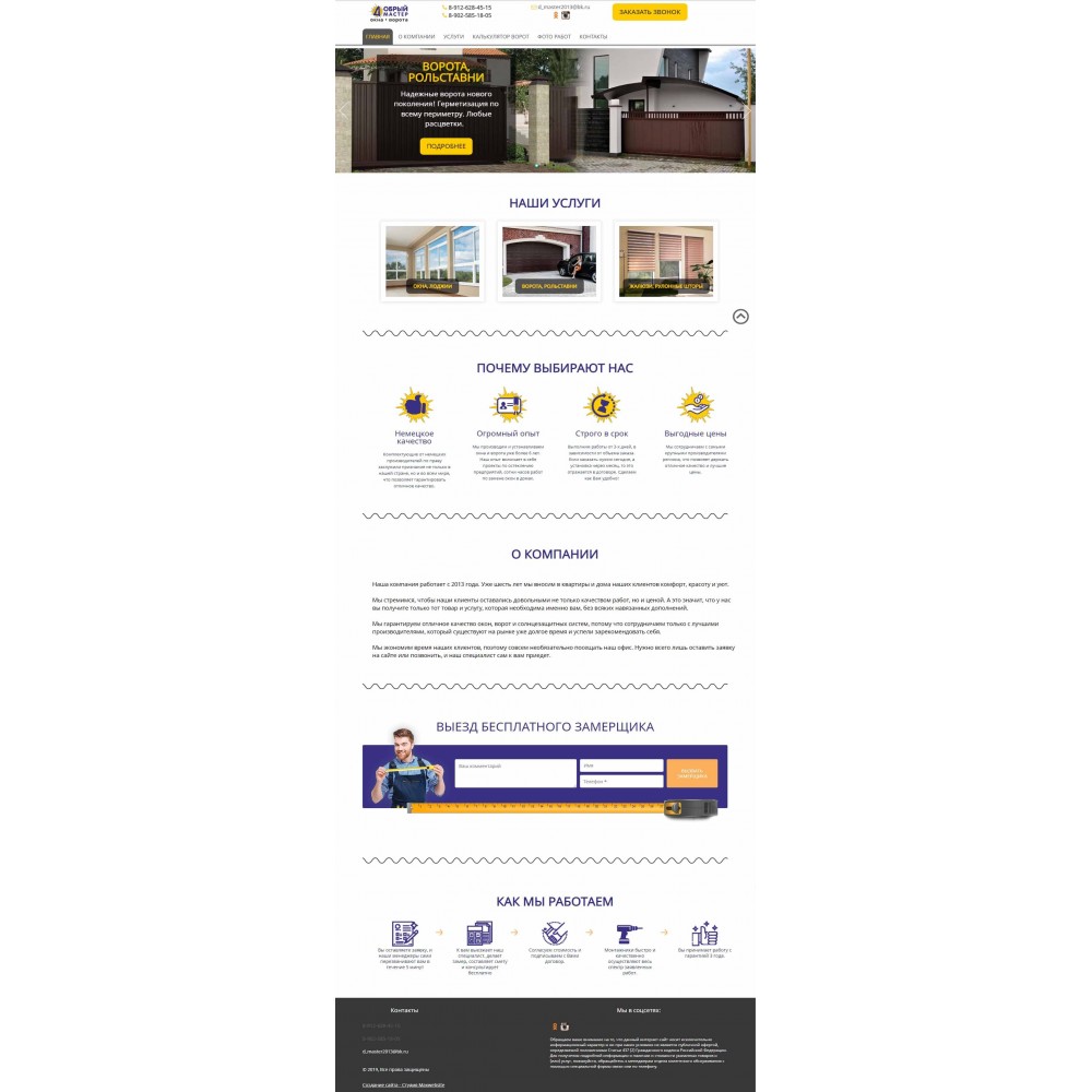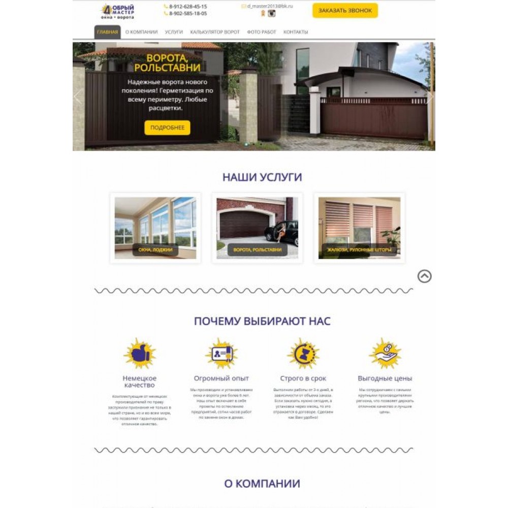 Сайт каталог услуг компании по установке окон и ворот г.Ревда от веб-студии Максвебсайт г. Заречный