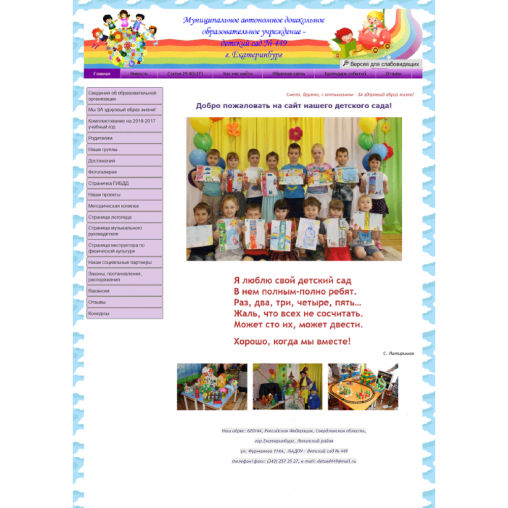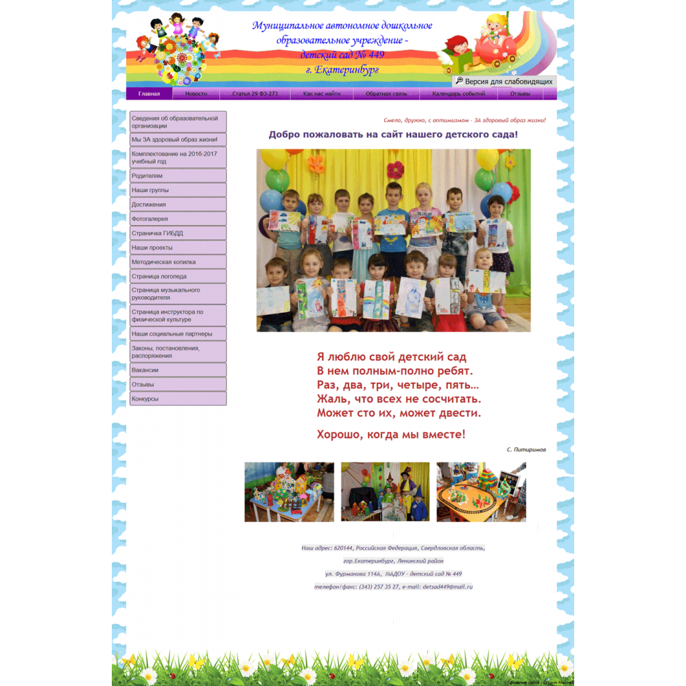 Сайт муниципального детского сада г.Екатеринбург от веб-студии Максвебсайт г. Заречный