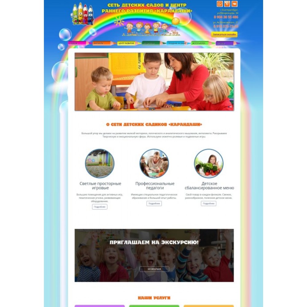 Сайт сети частных детских садиков Карандаши от веб-студии Максвебсайт г. Заречный