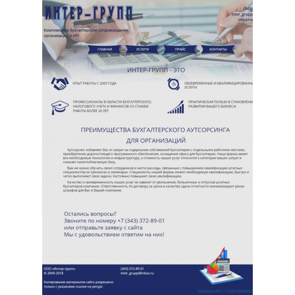 Сайт-визитка бухгалтерской компании г.Екатеринбург от веб-студии Максвебсайт г. Заречный