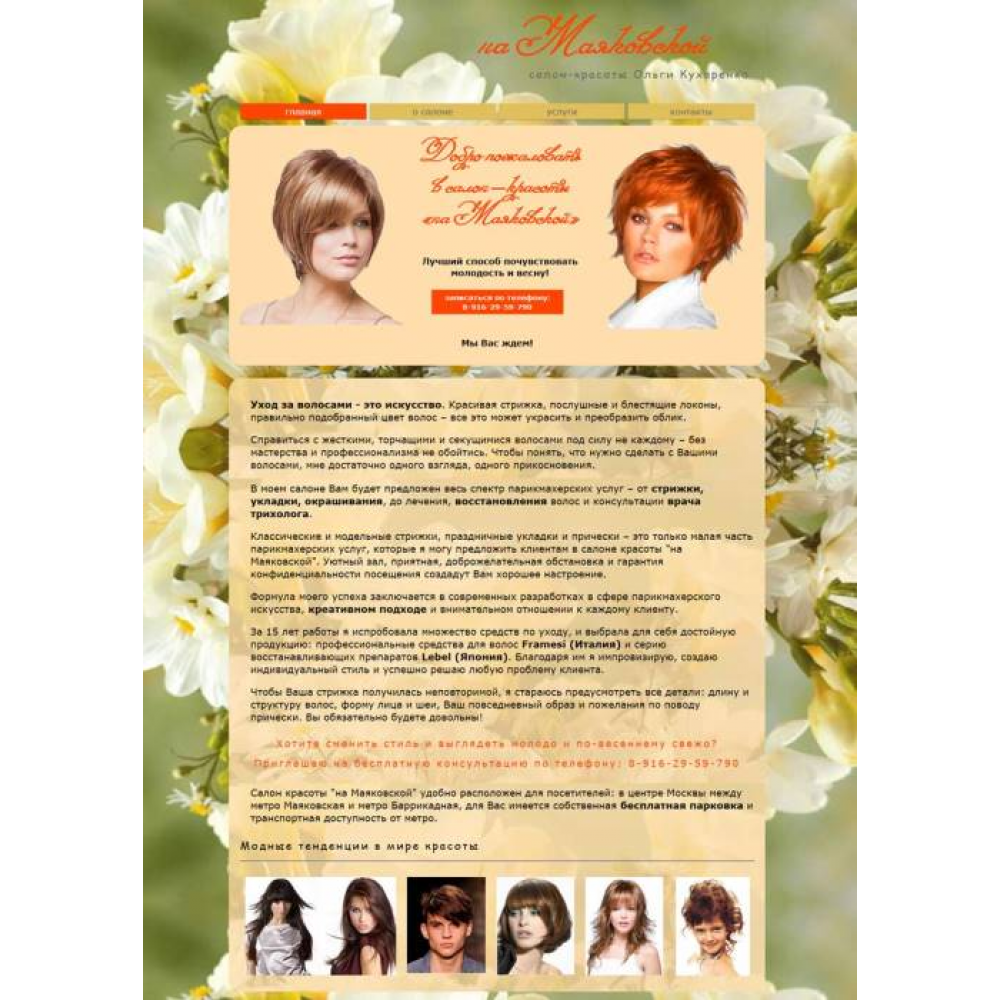 Сайт-визитка Салона красоты Ольги Кухаренко г.Москва от веб-студии Максвебсайт г. Заречный